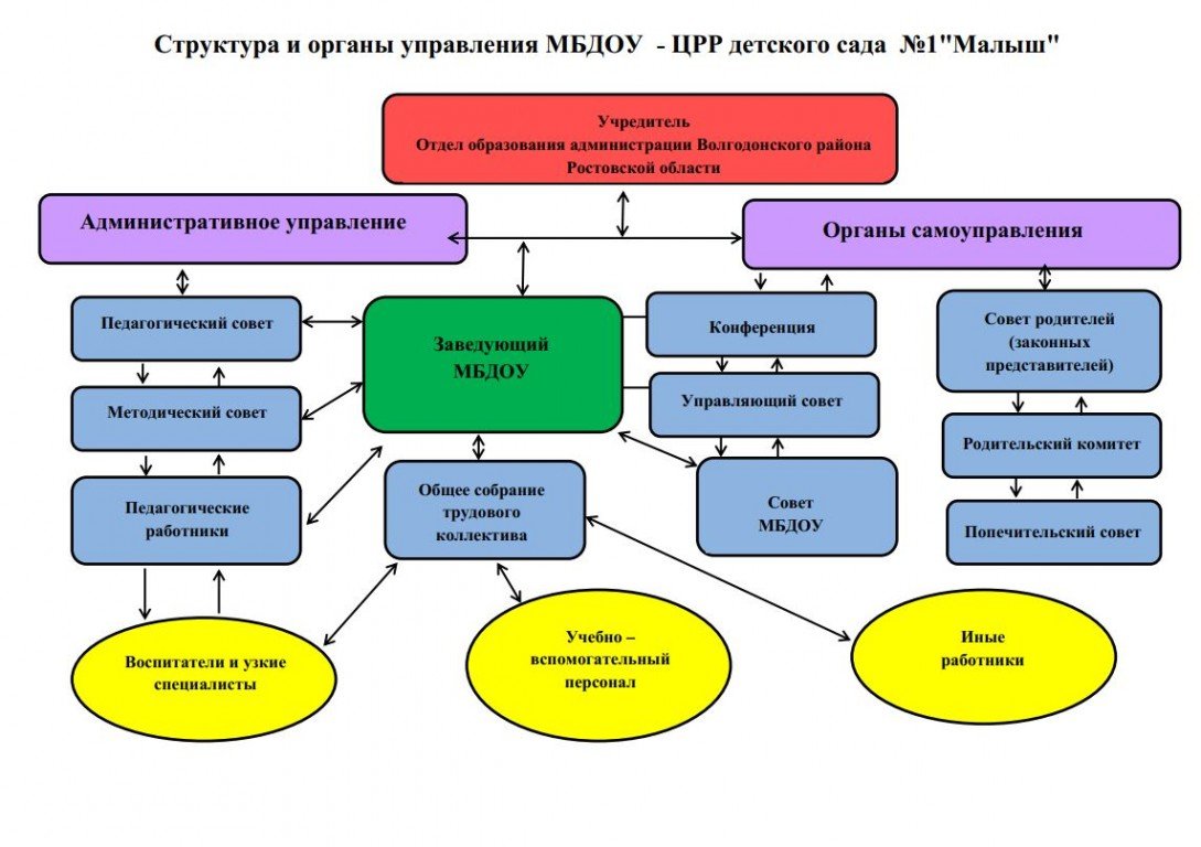 Управление муниципальным бюджетным дошкольным образовательным учреждением - центром развития ребенка детским садом №1 "Малыш" (далее -МБДОУ) осуществляется в соответствии с Федеральным законом от 29.12.2012 № 273-ФЗ "Об образовании в Российской Федерации, иными законодательными актами РФ, уставом МБДОУ.